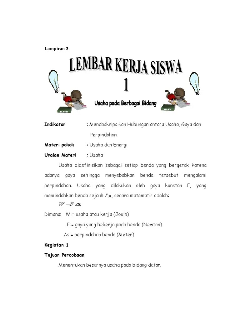 Contoh Lks Usaha Dan Energi Smp Pdf : Ipa Itu Mengasyikan Lks Bab Usaha Dan Energi / Menyajikan contoh soal untuk menghitung besarnya usaha pada suatu benda dan selajutnya .