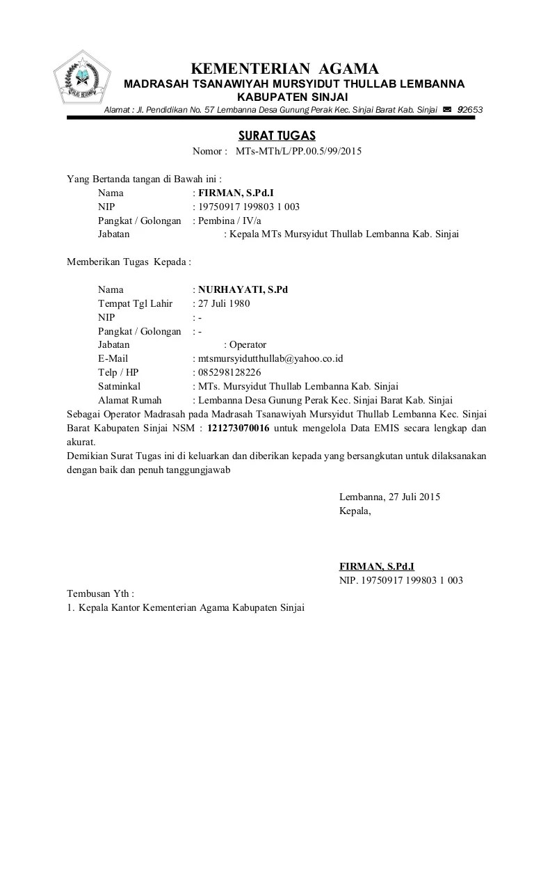 Guru dalam posisinya di struktur birokrasi sekolah adalah staff pengajar yang dibawahi oleh seorang kepala sekolah. Contoh surat tugas dari kepala desa. Bagian ini termasuk dalam kepala surat yang memempermudah urusan pengarsipan dan menerangkan secara singkat isi surat. Ketika kepala desa memberikan tugas khusus kepada perangkat desa atau bawahan . Surat perintah tugas (contoh surat tugas sebagaimana terlampir);.